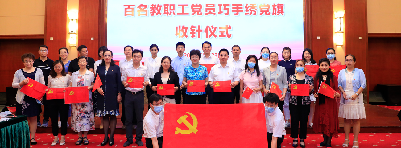 我校百名教職工黨員巧手繡黨旗收針儀式2021.06.29