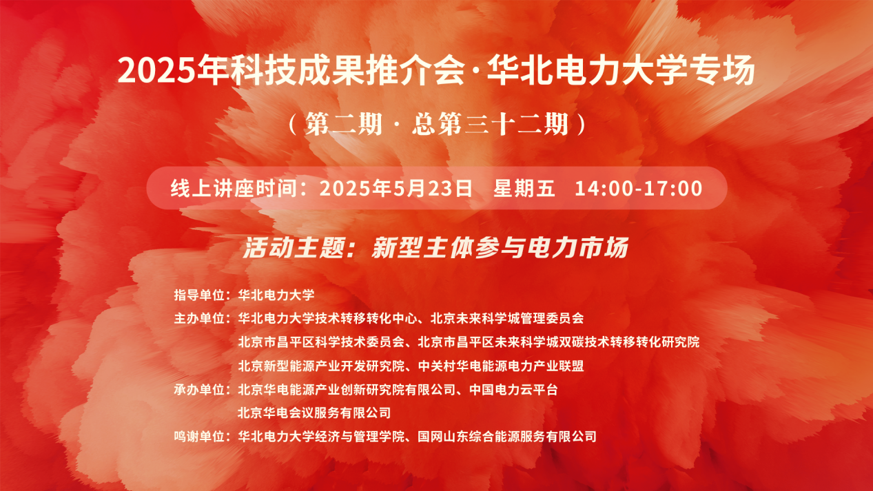 2025年華北電力大學(xué)科技成果推介會(huì)(第二期·總第三十二期)【講座時(shí)間】2025年5月23日 【講座地點(diǎn)】https://t19c5.xetlk.com/sl/1J2Eyn? ??????????? 聯(lián)系人:姜雯? 13331120514 【主講人】 1、張 健? 華北電力大學(xué)經(jīng)濟(jì)與管理學(xué)院副教授、碩導(dǎo) 2、劉 源???? 華北電力大學(xué)經(jīng)...主講人:張健、劉源、王俐英、盧宇航、張碩、韓鳳舞時(shí)間:2025-05-23 14:00地點(diǎn):線上講座 -