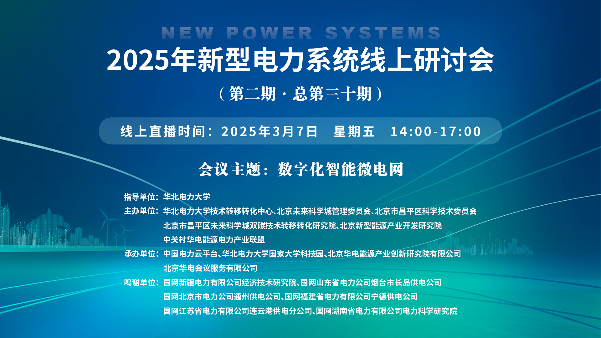 2025年新型電力系統(tǒng)線上研討會(第二期·總第三十期)一、講座主題:數(shù)字化智能微電網(wǎng) 二、講座時間:2025年3月7日 星期五 14:00-17:00 三、講座地點:線上直播:https://wlwth.xetlk.com/sl/4ckpmo(聯(lián)系人劉敏13331120445) 四、主講人信息: (一)主講人:許葉林 主講人簡介:許葉林,高...主講人:許葉林、郭浩、宋嘉琚、謝鴻、許笑、莫文慧時間:2025-03-07 14:00地點:線上講座 -